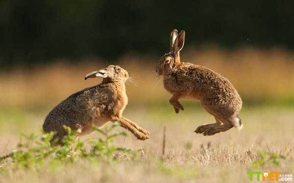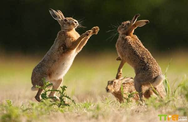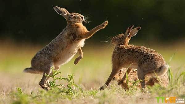兔击掌求偶嬉戏瞬间遭摄影师偷拍