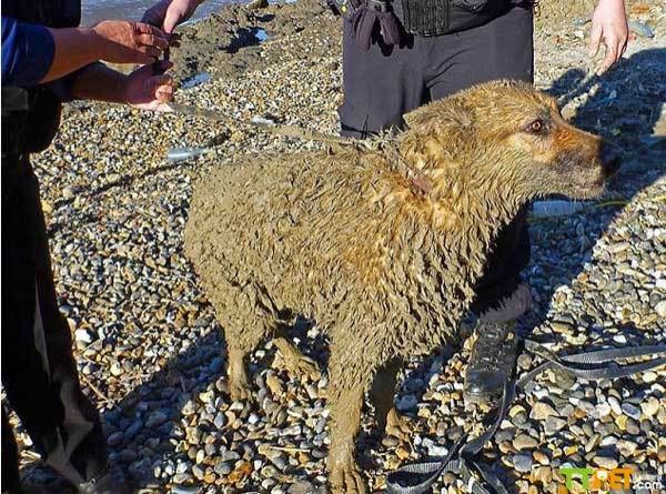犬陷泥沼求救英女子为救狗狗被困