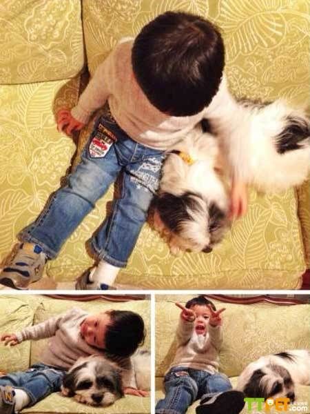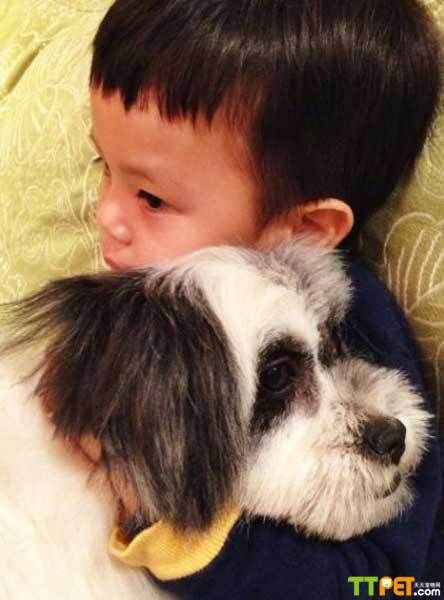 俪晒儿子抱小狗,孩子和流浪狗成朋友