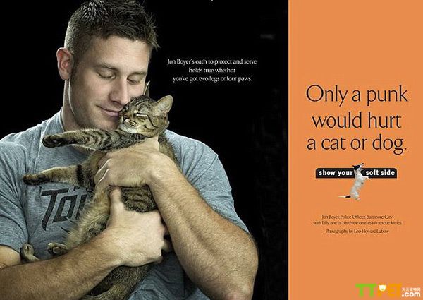 一个喜爱小动物的男人是不是更有魅力呢?美国的一名警察证明有一颗爱小动物的心,会获得更多人的称赞,甚至会博得女孩的芳心。美国巴尔的摩26岁的警察乔恩•波伊尔(Jon Boyer)是一名俊美且充满爱心的小伙子。他一直热心于帮助流浪动物,并会将其送往当地的动物收容所。去年五月,动物收容所将乔恩和小动物的合影上传至社交网站“脸谱”上,吸引众多人围观,甚至有人在网络上公开向乔恩求婚。