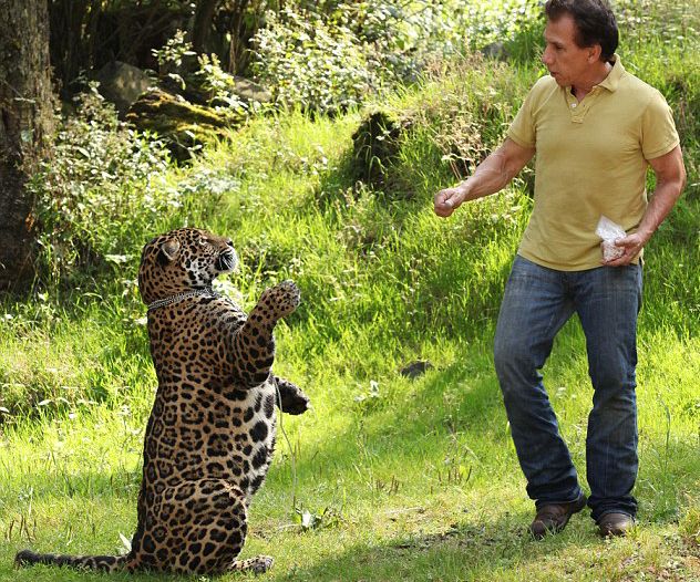 和美洲豹呆在一起是不是有生命危险呢?然而对于拉斐尔来说,美洲豹是他的宠物,是他的最爱。在过去4年里,拉斐尔一直把美洲豹“玛雅”(Maya)当作宠物悉心照料,不惜花费5万美元(约合人民币30万元)为它搭建4000平方英尺(约370平方米)的窝棚,给它喂食有机野猪肉,甚至还带它“下馆子”。
