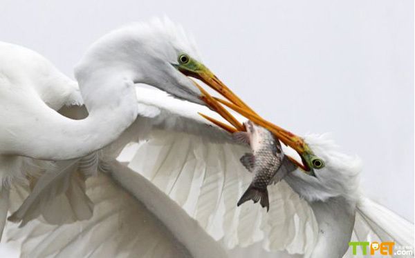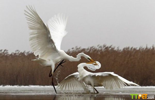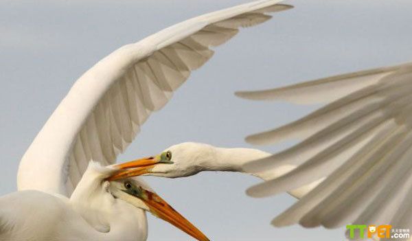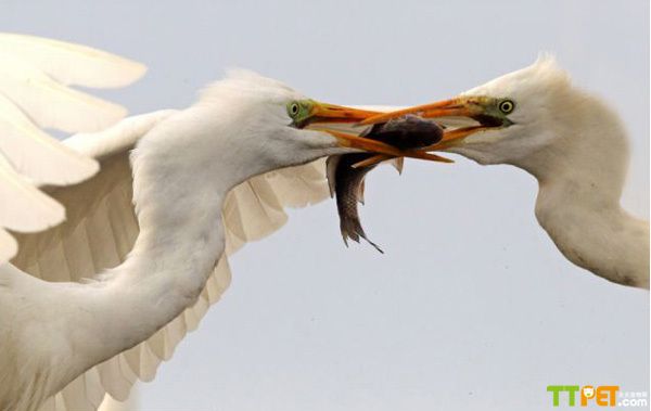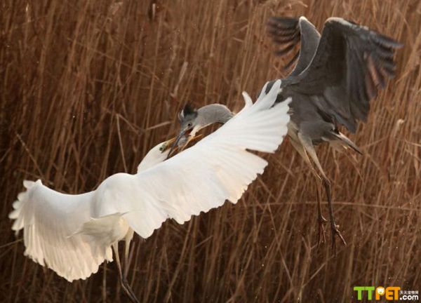 牙利白鹭为夺食上演空中大战