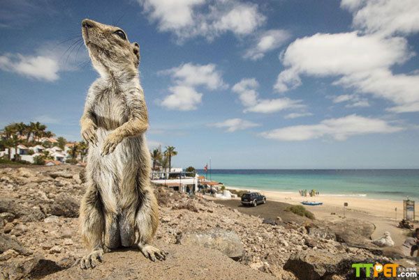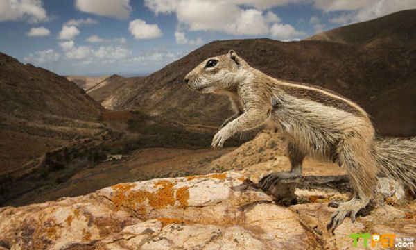 现在越来越多的动物们喜欢上了自拍,它们在摄像机前毫不惧怕,神态自若,甚至摆着pose展现自己迷人的一面。西班牙富埃特文图拉岛,花栗鼠也开始玩自拍了。英国摄影师Sam Hobson到富埃特文图拉岛度假,没想到在这里发现了这意想不到的小家伙。花栗鼠“移民”到了当地,现在从平地到火山顶端都能发现它们的身影。