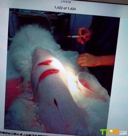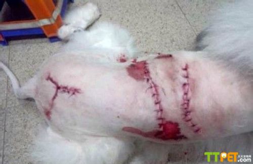 宠物医院的卢医生介绍,前晚9时30分许,波妞被送过来的时候,背上有两条10多厘米长的伤口,出血很多,经过检查后发现,波妞身上的背最长肌已经断开了,可以直接看到波妞身上的骨头,估计最深处约有3厘米,缝针就缝了3层。当晚手术进行了3个小时,目前波妞的情况还算稳定,但是还要经过三四天观察,以确定有没有影响到波妞的神经。而在治疗方面,目前治疗费用已经花了5000元,治疗乐观的话,全部治疗结束需要1万元左右。
