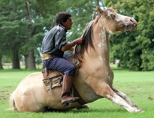 怎样能达到人与动物的自然和谐呢?人们有着自己的方法,有的人就能读懂动物的心,在阿根廷就有一位马语者,能让马听懂他的话。来自阿根廷的杂耍人马丁˙塔塔(Martin Tatta)是世界上最优秀的马语者,他能够将马驯服并使其配合完成各种杂技,包括像印第安土著一样将马当作枕头,倒立在马背上,坐在马蹄下,让马仰卧然后坐在它的肚子上,让马后退蜷曲坐在马鞍上等等。