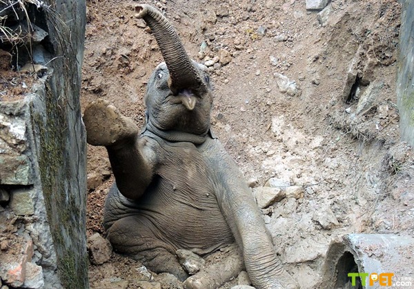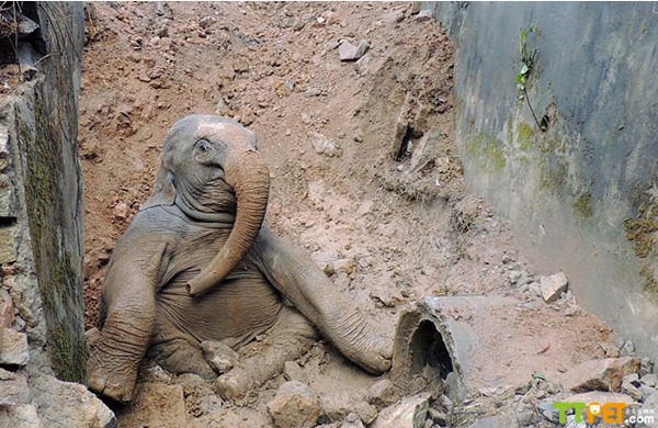 幼象跌落壕沟众人施救,小象受惊吓变表情帝