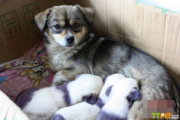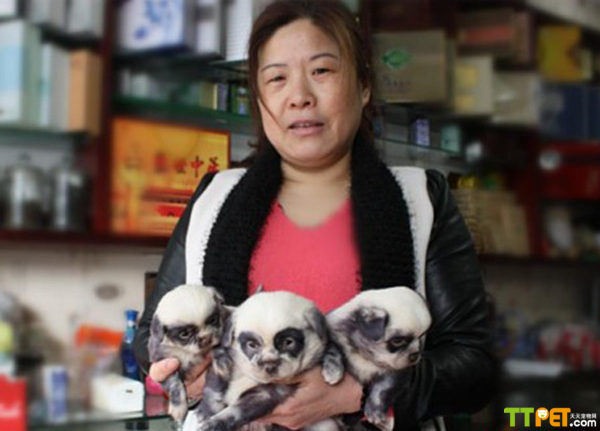 见过人们把白毛的狗狗染成熊猫,家长牵出去很拉风,当然也有人说给狗狗染色对狗狗不好,所以很多人不赞成给狗染色。那么有没有天生的一件熊猫装的狗狗呢?还真有这样刚出生三只狗狗,很酷似熊猫。
