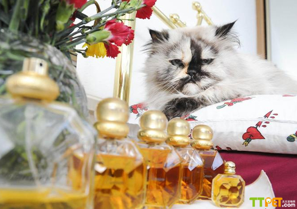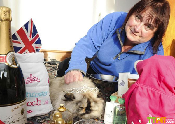 多少猫咪都想拥有国王或者女王的待遇,想让主人成为它的奴隶,人们也心甘情愿的为猫咪付出着,但是有时候太溺爱就显得过而不及了。英国妇女Carol饲养了一直"英国最受宠的猫咪"——名叫Dumpty Roo的喜马拉雅猫。 从设计师专门打造的衣柜到20英镑一袋的猫粮,从瓶装水到水晶碗,无处不华丽至极。它甚至只走在细羊毛上,因为爪子太娇贵。Carol称,没有爱猫的同意,自己也不会跟老公John出去度假,甚至喝醉酒的时候还得偷偷溜进屋,仅仅因为爱猫不喜欢闻到酒味。