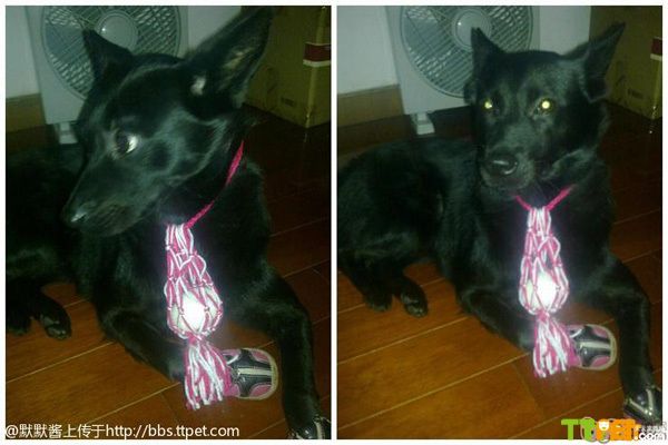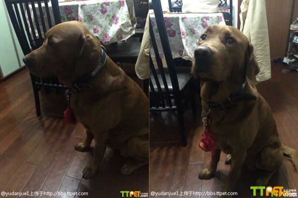 挂蛋了,会员“yudanjue1”说:“本来想挂两个蛋蛋,但是这样一来前头两个蛋蛋,后面两个蛋蛋,猥琐至极,于是作罢。蛋黄真是用我爱狗的姐姐的原话是:蛋黄是老可爱的,但是怎么这么难看。我们蛋黄只不过猥琐而已!网兜找不到了,红纱袋凑合吧。蛋黄一路上心心念念这个鸡蛋,不时用头把鸡蛋晃来晃去,还没到家就碎了。只好剥开来给他吃了。”