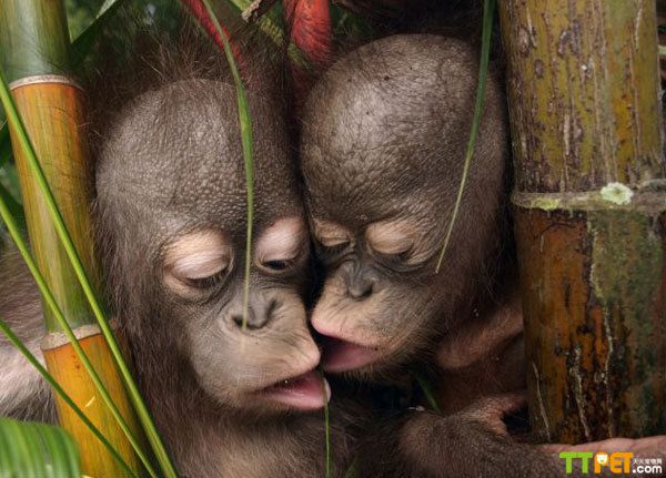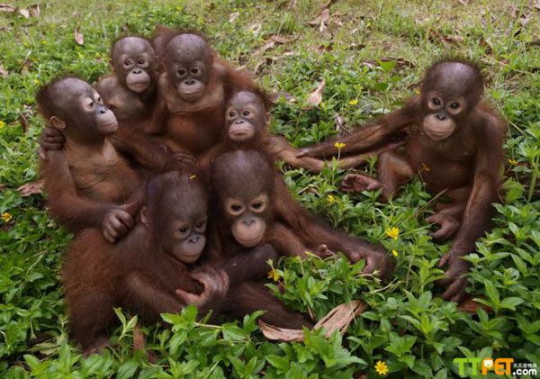 猩猩生性喜欢安静,不喜欢打架冲突。猩猩在幼儿时期喜欢和妈妈呆在一起,跟妈妈学习生活本领。通常一只母猩猩需要6至8年时间带大一只小猩猩。但是由于人们的采伐活动,在过去的20年里婆罗洲的森林面积减少了55%,猩猩总量比60年前减少了一大半。现在很多成年猩猩死去,留下小猩猩生活在森林里,沦落成了孤儿。摄影师岩合光昭这次专门来拍摄这群小猩猩。画面上小猩猩们十分和谐,还摆出各种Pose迎合摄影师的需求。