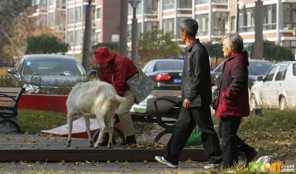 每天9时到13时就是曹大娘固定的溜羊时间,无论秋夏秋冬风雨不误。曹伶在街头遛羊的场景,“回头率”总是居高不下,眼神多是诧异,但曹伶心里舒坦。她说,到老也没找个伴儿,由于工作或家庭等原因,跟姐妹们也不常往来,在别人眼中,自己是不幸的,但她自己不觉得遗憾,“羊就是我最好的伴儿!这辈子有它相伴,很开心。”