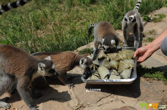 端午节到了,人们过着节日祭奠着诗人屈原,同时也吃着美味的粽子,动物们也要过节,青岛森林野生动物世界的工作人员为园里的野生动物特意制作了各色粽子,让动物们也分享节日的快乐。
