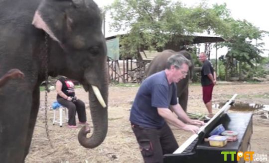 人类已经无法阻止多才多艺的动物们了,这不泰国的大象竟然懂音乐,还可以和钢琴家一起演奏。在泰国,有一只名为彼得的大象。它的乐感极佳,能与钢琴家合奏“蓝调”。最有趣的的是,演奏的时候它还会一边点头,一边扇耳朵,看上去就像是在打节拍。