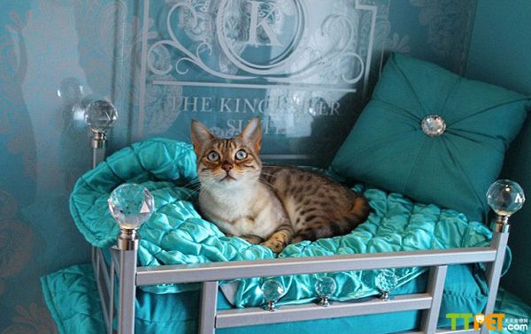 这家酒店有12间不同色调的客房,室内装修非常典雅温馨,并有户外阳台,采用地暖。设有猫咪专属的柔软睡床,古典和现代风格均有,并且有42英寸电视。猫咪们的食材也是精心准备的,酒店选用虾仁、三文鱼、鳕鱼等有机食材进行精心烹饪,并把做好的食材放在精美的瓷盘中供猫咪们食用,费用是每晚60英镑(约合600元)。
