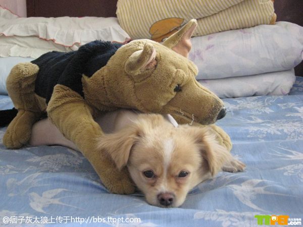 小白汪睡眼惺忪地趴在床上,这是从地上逆袭到床上了,坏家长还把一个大玩具放在小白汪的身上,这样小白汪情何以堪啊,不过小白貌似无所谓,继续酝酿着下一个美梦。