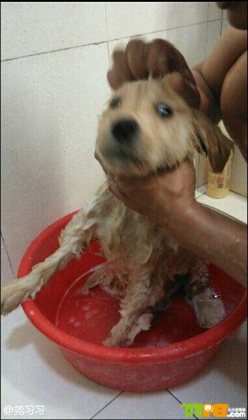 洗澡对于一些狗狗来说是一件痛苦的事情,甚至家长说洗澡这两个字,狗狗都会躲起来,逃过湿身的命运。当然洗澡能洗掉狗狗身上的脏东西,让狗狗变得更加的清爽,也避免一些寄生虫在身上滋生,让狗狗更加的健康。会员“尧习习”就在帮着家里的狗狗洗澡呢,狗狗的表情看起来真的很生动,这是在求救的感觉啊。