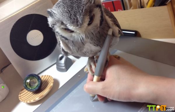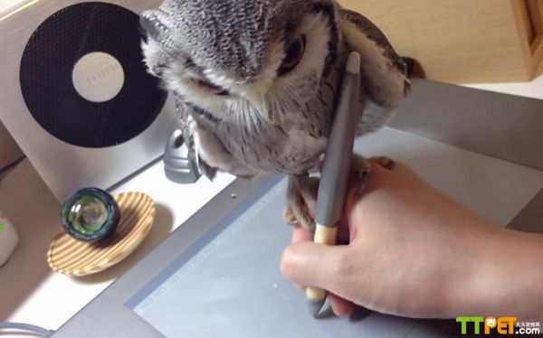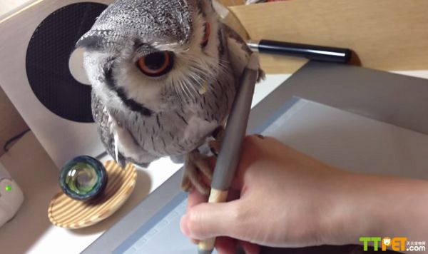 视频中,当这位日本男子快速滑动鼠标的时候,这只小猫头鹰抓住主人的关节。它差一点从手上摔下来,不过很快又恢复了平衡。这两分钟的视频短片,在网上被点击了超过50万次。一位网友开玩笑地说,这只猫头鹰在教它的主人如何画画。