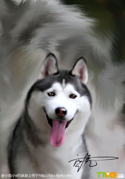 爱狗狗的家长会有各种方法展现狗狗的精彩,可以用相机记录,可以做成日历,也可以把狗狗头像做成车贴,留下狗狗每一个精彩的瞬间。会员“小雅小e的麻麻”就用鼠标绘出了狗狗的美图,每一张图都那么精彩。