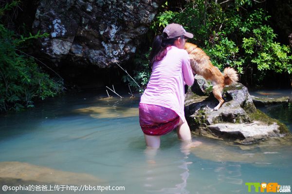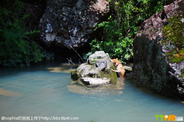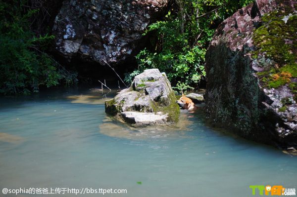 都说可怜天下父母心,小草狗不上岸这要急坏家长啊,在石头上待着也不是个事啊,虽然不是亲妈但是会员“mylulu_vivian”也要做好麻麻的责任啊,果断的裙子一扎就下水就汪了。会员“sophia的爸爸”说:“小草狗长那么大这是第一次跟大部队出来玩,平时都被藏在家里了,在楠溪江小草狗第一次下水第一次游泳,留下了太多的第一次,石桅岩游玩那天太热了,大家都让狗下水降温去了,小草狗也不例外,可是和二货不往回游反而笔直往前了。”