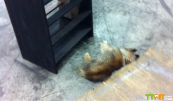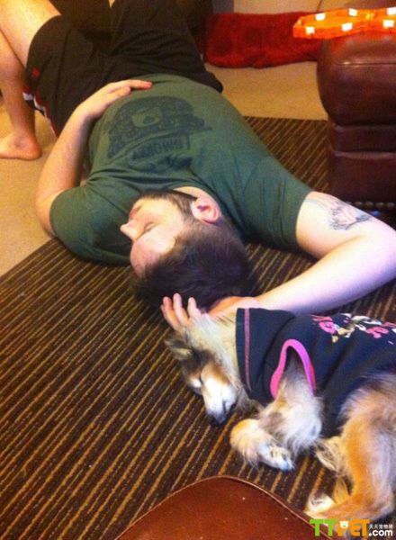 在取得老婆的首肯后,男子决定在下班时带它回家;狗狗似乎知道自己即将有个新家,乖乖的躺在地上休息,等男子下班。