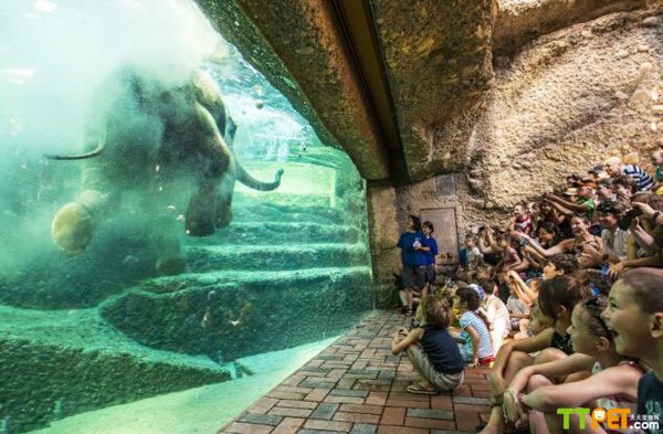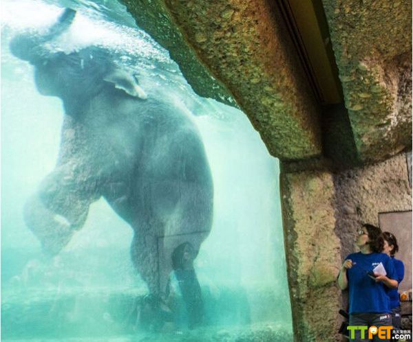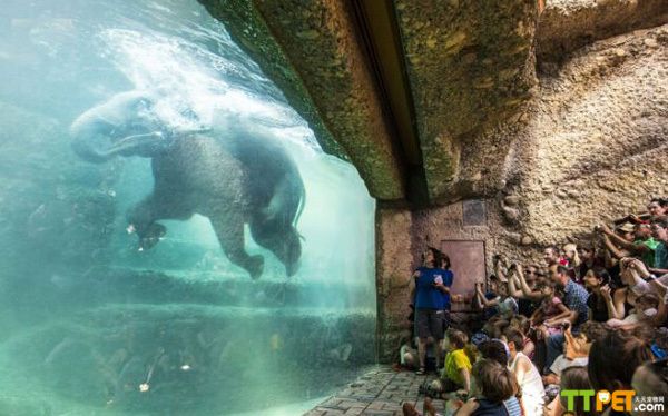 看着大象在水中洗澡是怎样的感觉呢?在瑞士苏黎世动物园就有一个大型的大象围场,可以看见大象们在水底的玩耍。这一新型大象围场7日对外开放以来,已吸引了大批游客前来参观。这一新型大象围场达1.1万平方米,为六只大象提供了舒适的生活空间。围场外设有水底观光区,游客们可以在此观看大象们洗澡和游泳。