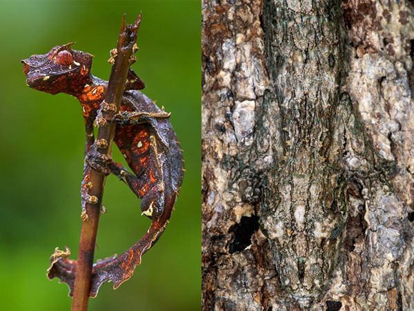 无论是伪装成树叶,还是隐身于树干,都可以有效地躲避一些依靠视力吃饭的掠食者,特别是鸟类。有趣的是,在澳大利亚也有一种壁虎演化出了和叶尾守宫类似的策略,尽管它们之间的亲缘关系并不近。