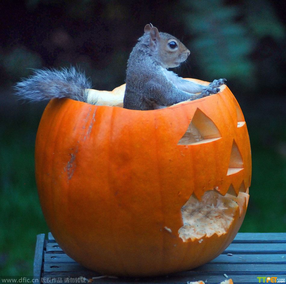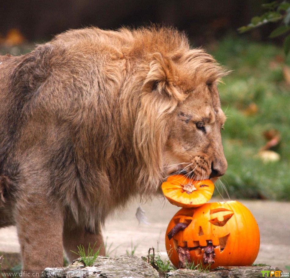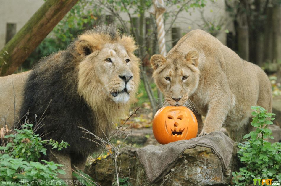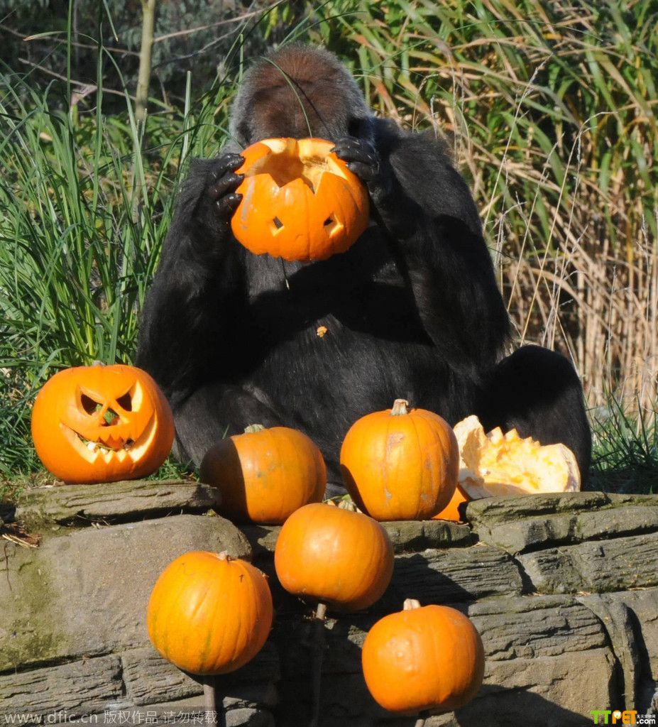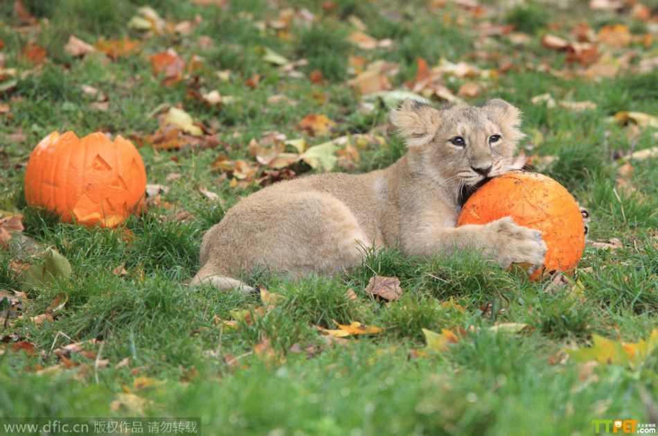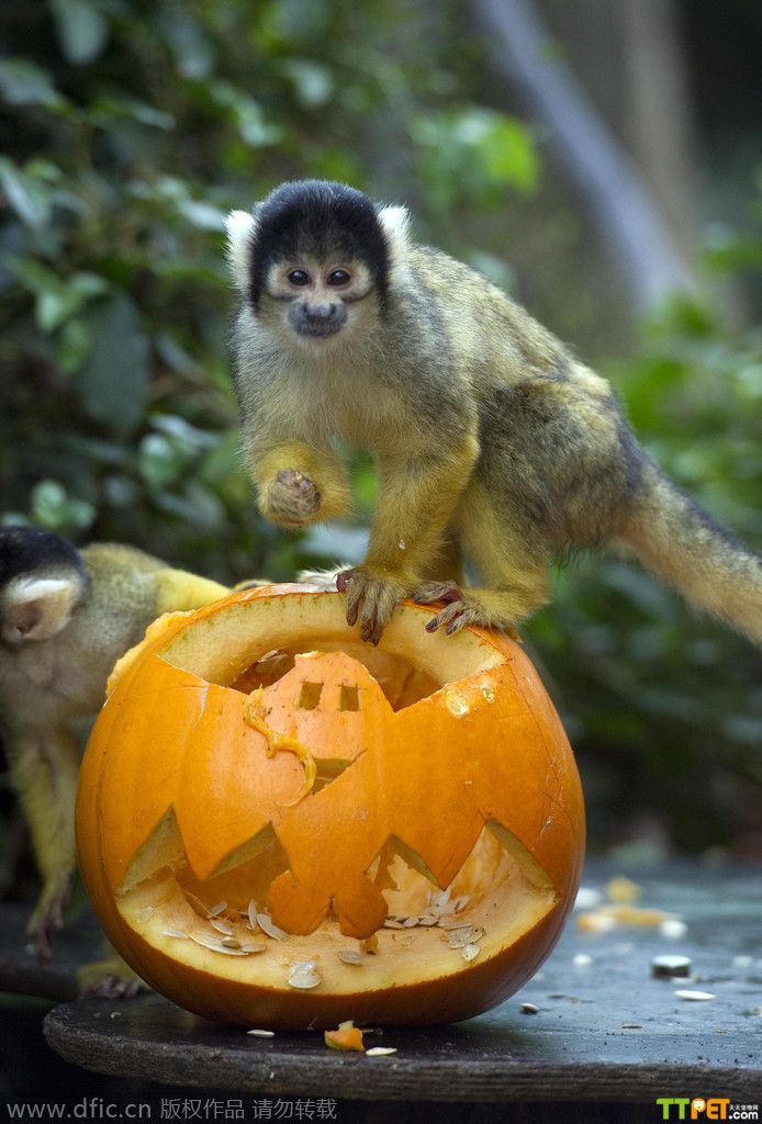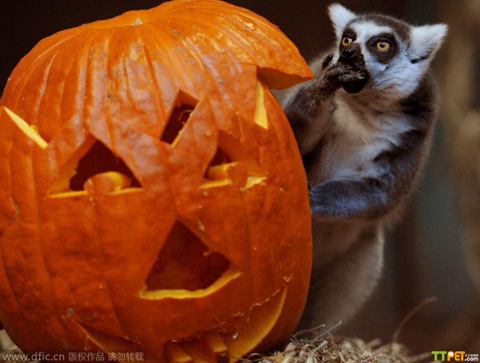 今天是万圣节,是西方传统节日,小朋友们都会穿上化妆服,戴上面具,挨家挨户收集榶果,不给糖果就捣乱!其实不仅人类过节,连小动物也要参与其中!英国伦敦动物园也给小动物们准备了“南瓜”礼物,让它们用自己特有的方式来欢度万圣节。